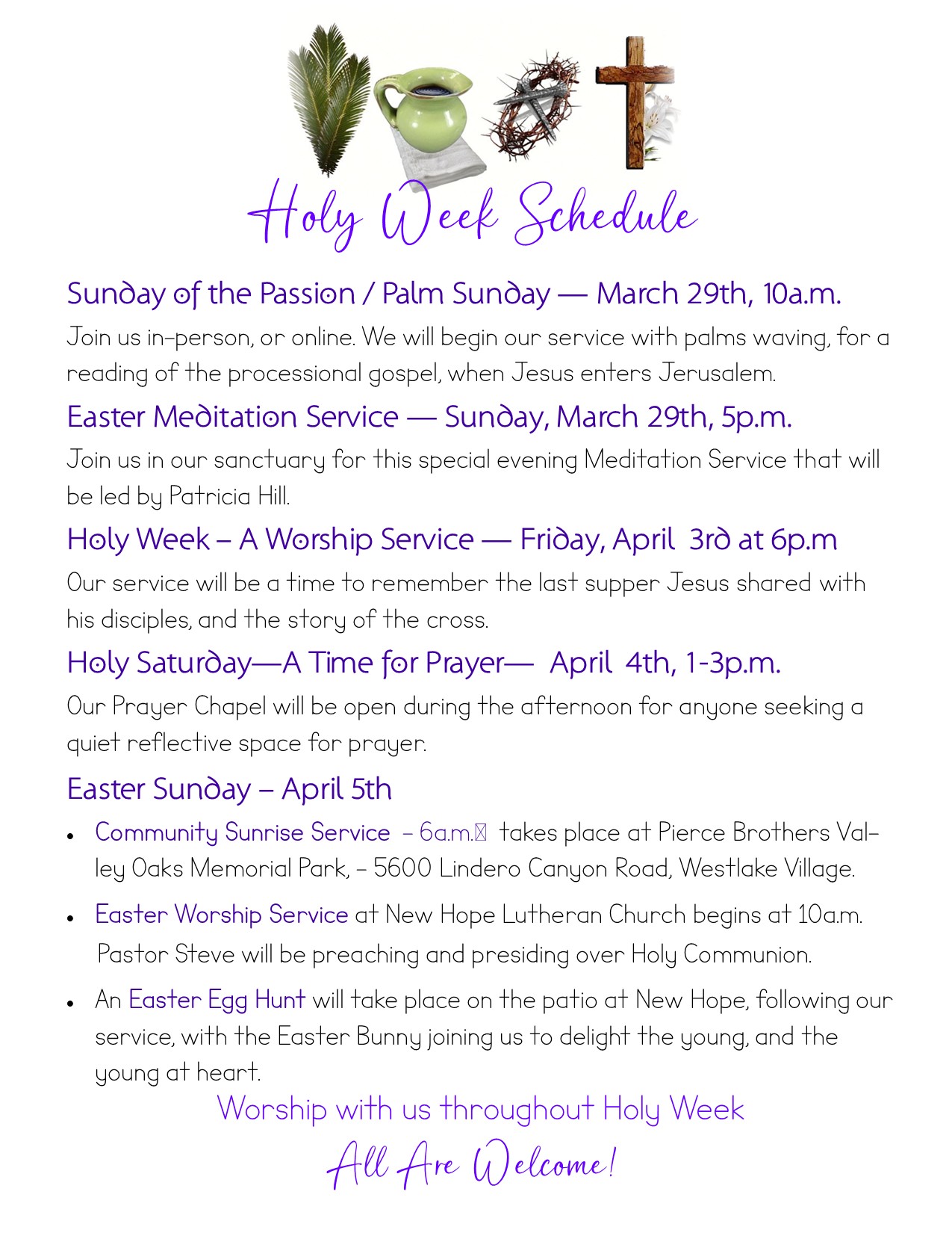 Join us for a blend of traditional and contemporary worship styles with relevant, life impacting messages to help you grow in your relationship with God. Holy Communion is served each Sunday – All Are Welcome!