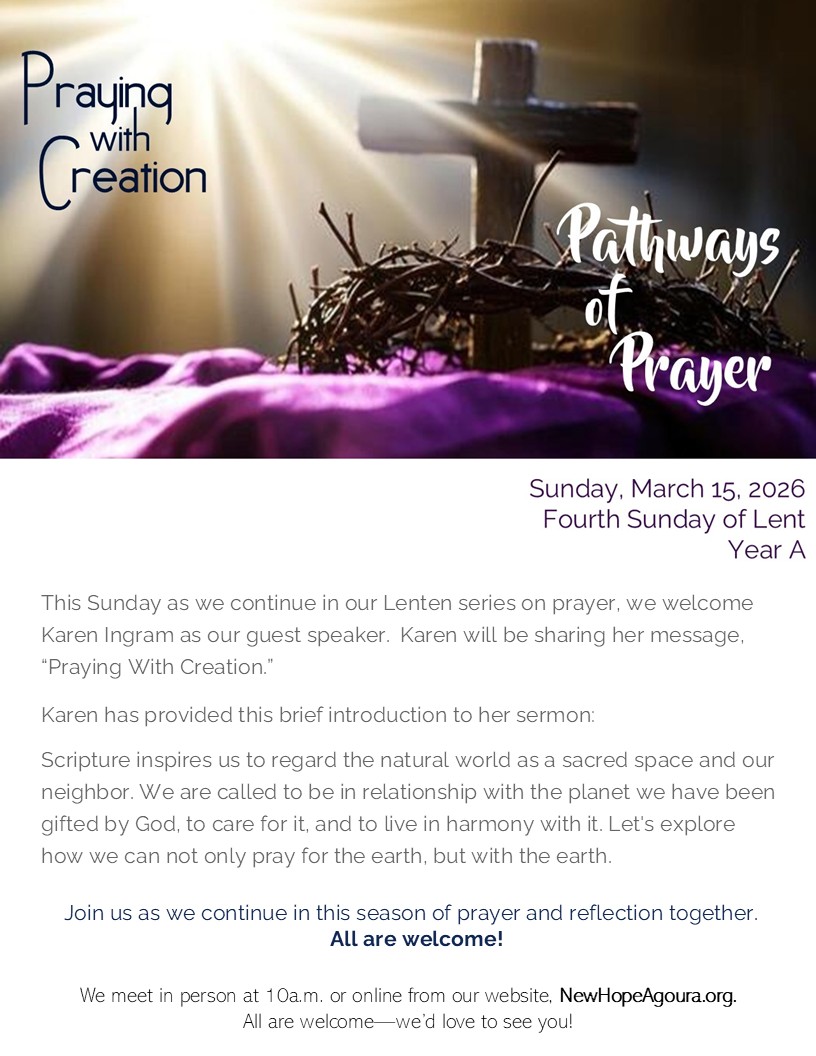 Our theme is “Pathways of Prayer.” We meet at 10a.m. in the sanctuary or join us online.