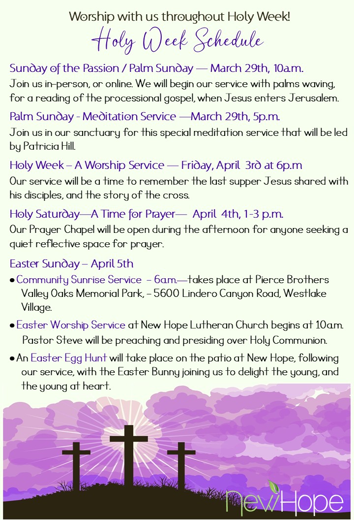 There’s always a lot going on in our New Hope community, both in-person and online. Check our events calendar to see what is coming up next.